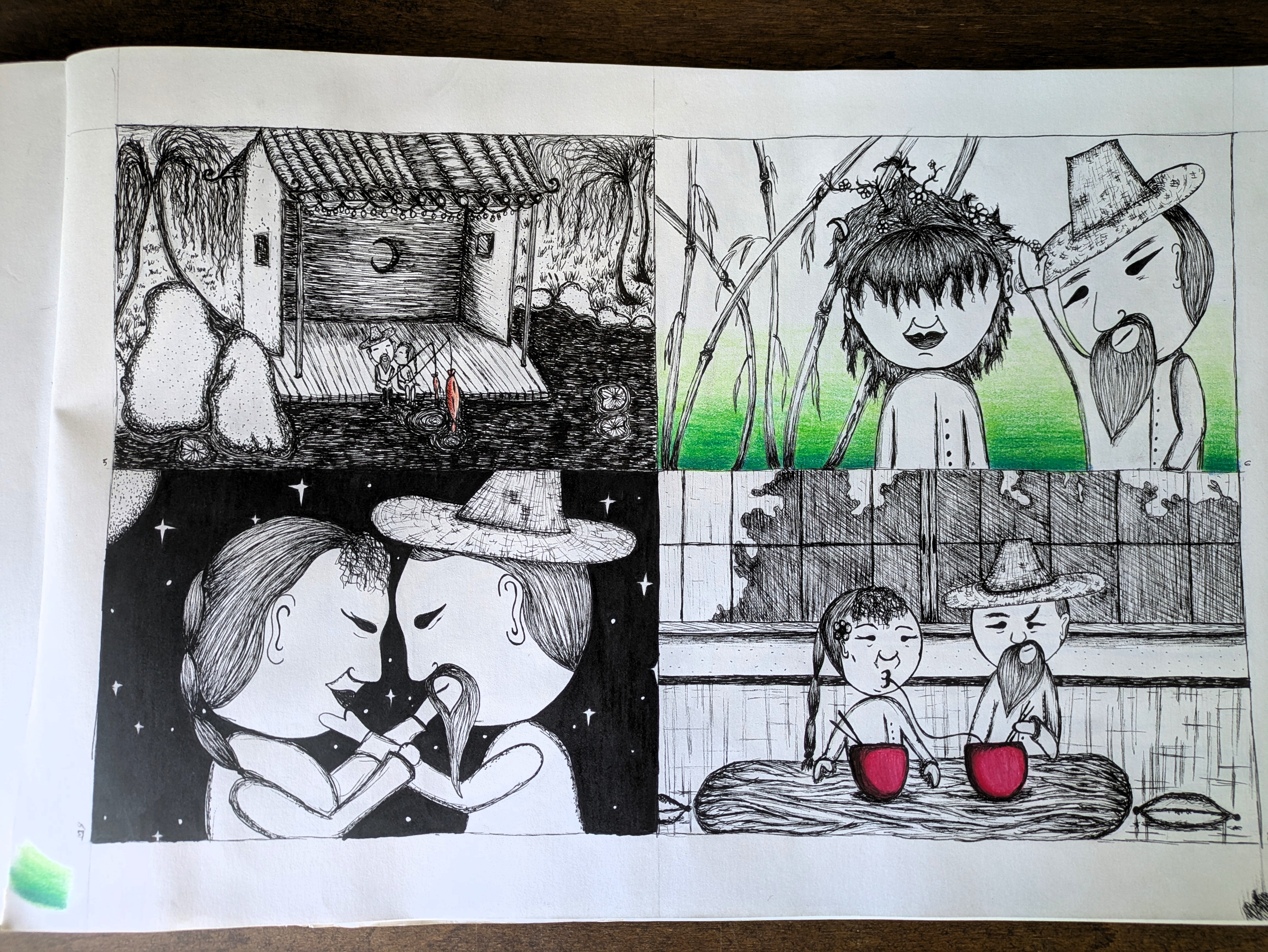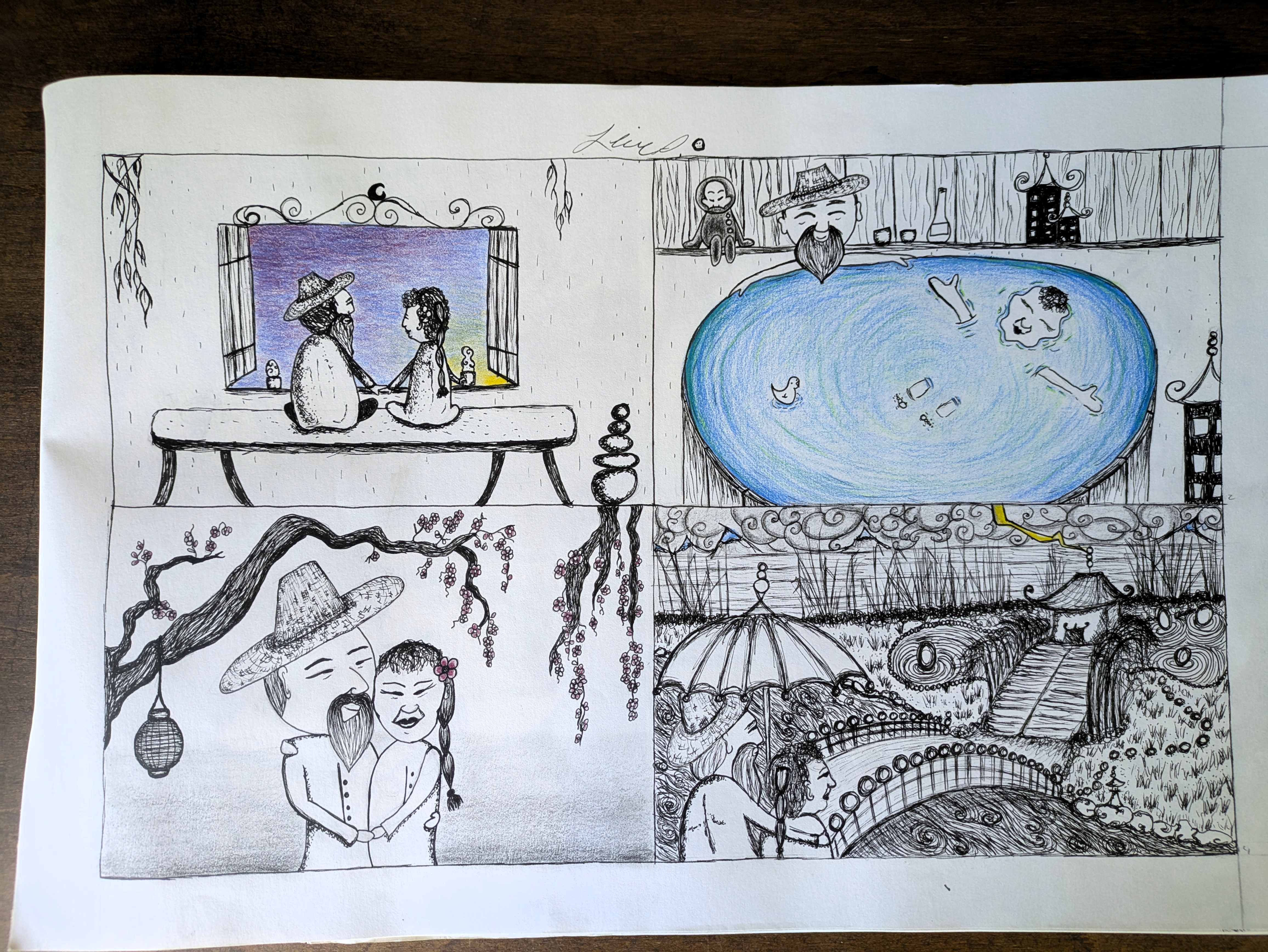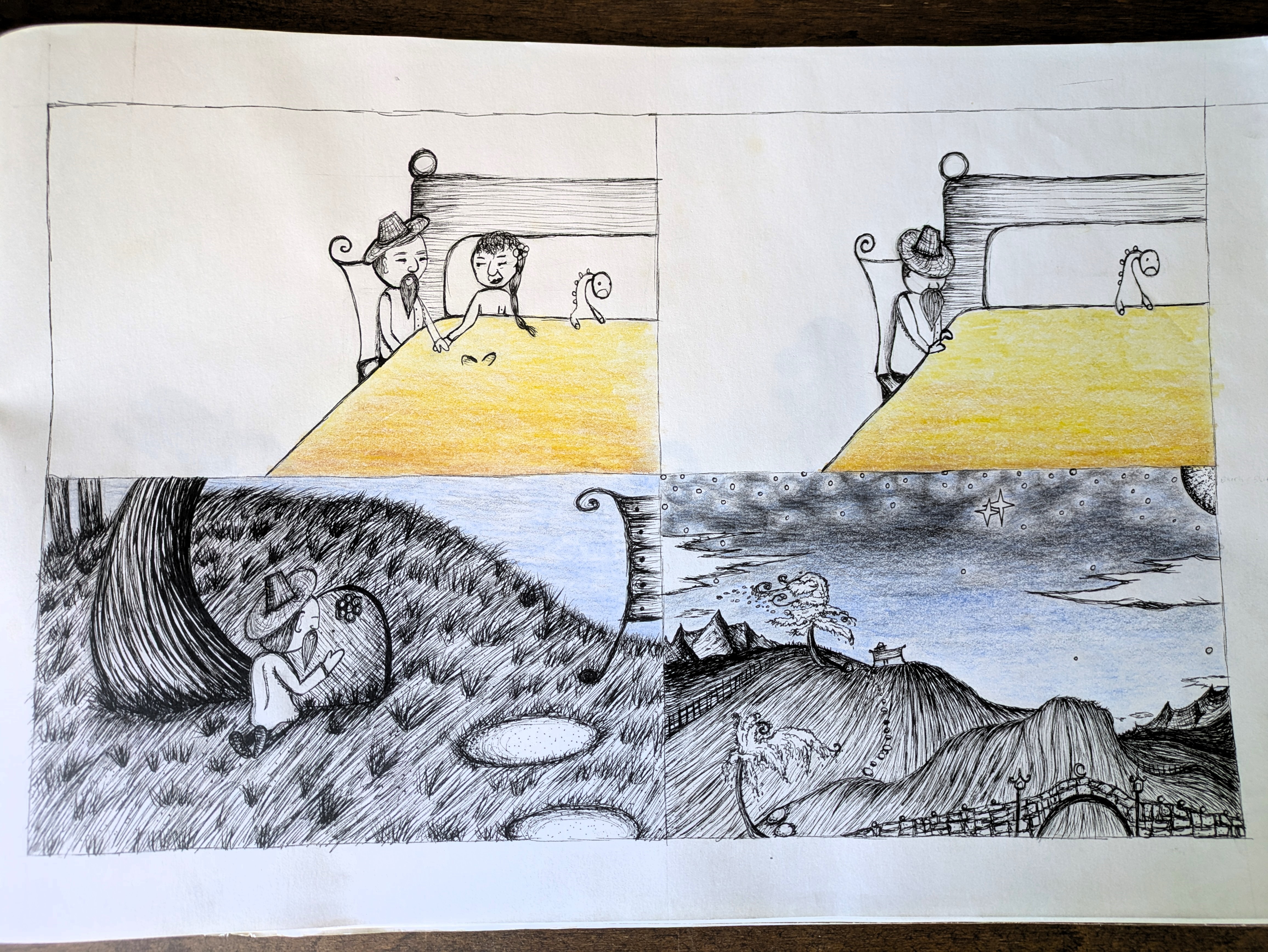 2018 was a tough year. My parents divorced, my grandfather passed away, and my relationship at the beginning of the year ended. This short story video is about an older couple exemplifying a heathy relationship and everything a relationships should feel and be like. Unfortunately, my was not. The end of this story represents the end of the relationship. This was done on Line And Tone Drawing Paper given to me by my mom when she was in school. The materials were color pencil by Faber Castell and ink also Faber Castell. I also overlayed the pictures with a brown wrinkled paper digitally which you will see in the video below.