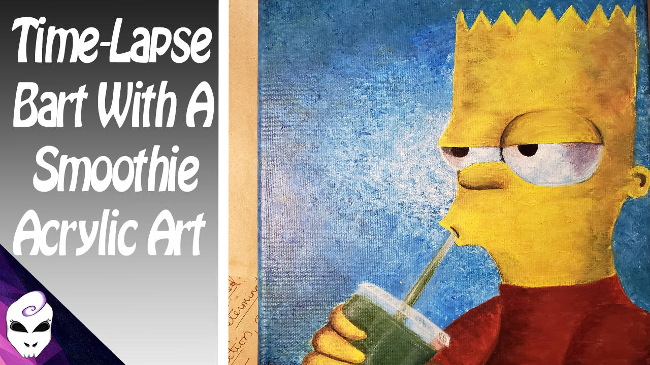 Today I’ll be sharing with you the process of this painting I did for my old juice bar job. I made a promise to paint Bart Simpson for my fellow co-workers as I was leaving to go work at my new job. Why Bart Simpson? Who knows the real reason. My manager one day drew a Bart Simpson near our check in list(what needed to be done before leaving for the night) I ended up drawing a Bart on our white board to join in the fun. From their everyone in the juice bar started to draw little Barts on pieces of tape leaving it all over the juice bar for people to find. I would be making a smoothie for a customer opening the lid to the protein powder to reveal a Bart under the lid. It kept the juice bar job interesting. I would make a joke saying if Grassroots(the name of the store) was a band, the juice bar would be the bass players of the band haha. I enjoyed the job but in the end the drive was to far and wasn’t able to get bills paid. It helped the financial bleeding until I was able to get a new job close to home. The reason I did not keep the video posted on my YouTube channel was because this was just for a gift and was not getting paid for it so I did not do the painting in my style. The inspiration came from this artist.