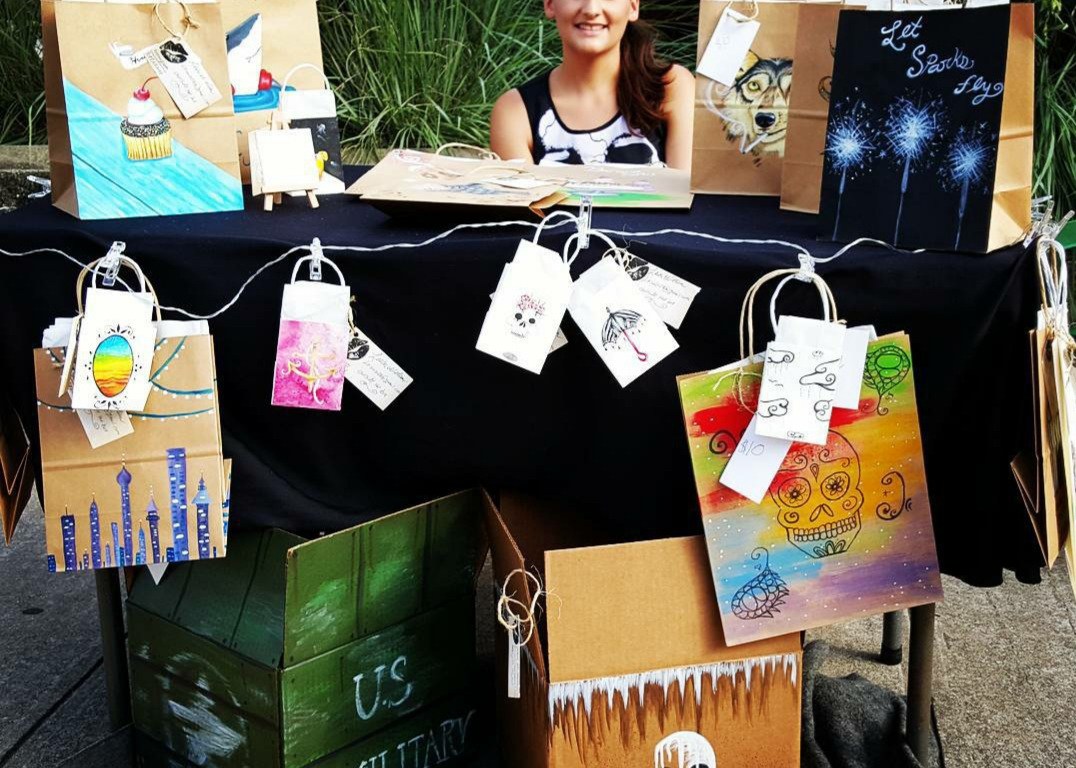 I remember a customer came up to my booth once and said,” that’s a lot of work for a bag” For my first art show, I made a bunch of custom painted gift bags. As you can see in the picture above. It took me a bit to understand what she really meant. I spent countless hours on painting custom art bags day and night to have none of them sell. I needed to work smarter not harder especially on something just as simple as gift bags. Before going heavy handed on something, just start small! I’m not saying stop thinking big but you have to plant the seed first.