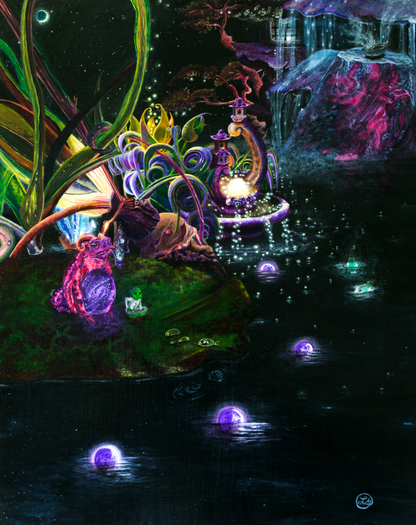 As you can see, I pulled the toad out of this painting. Right now, I’m getting an inventory going. Might do red bubble for these but, we will see!! Eventually, I will make a design for this painting too!! I’m really excited for this one! In the mean time, stay tune for merch artsy peeps!!